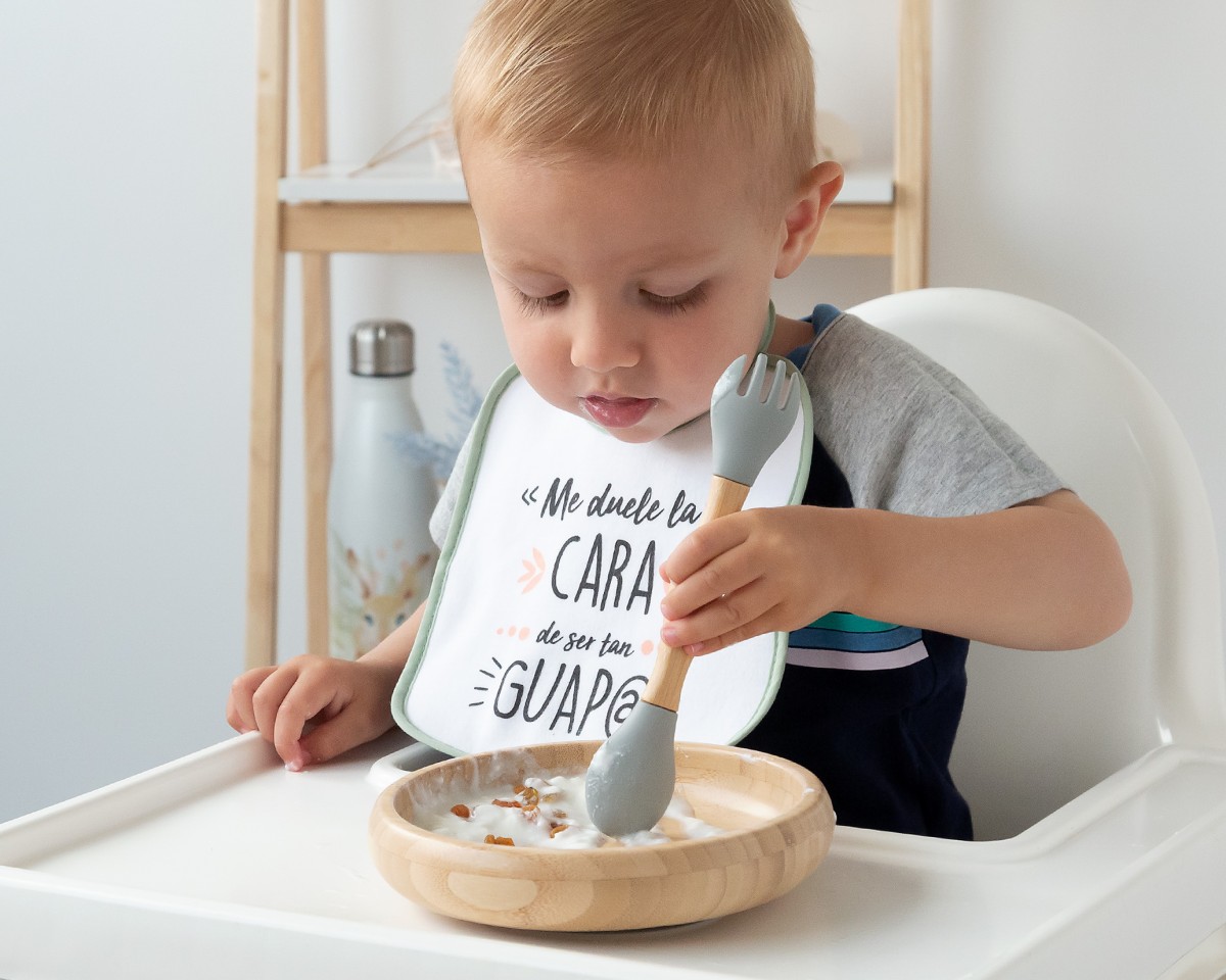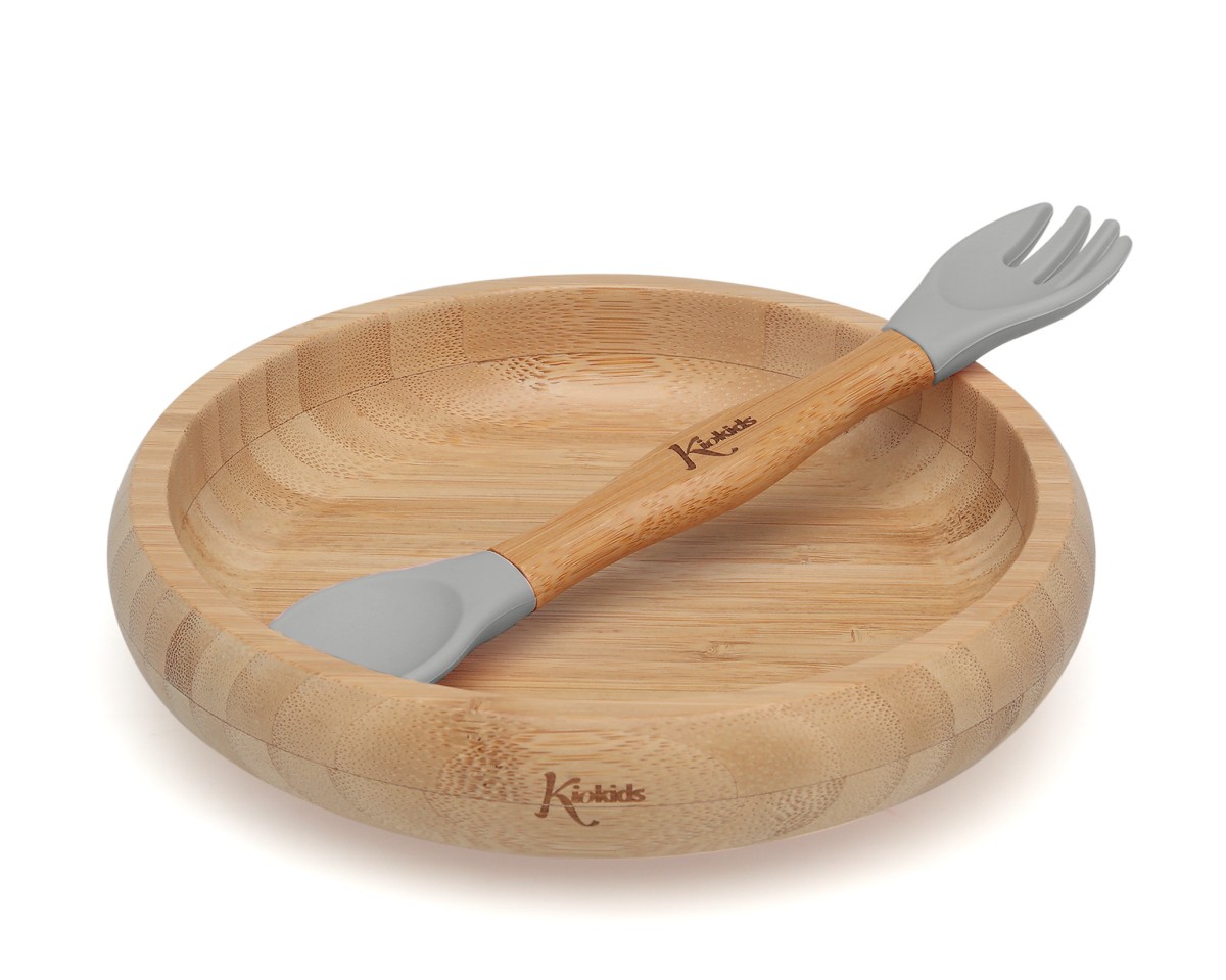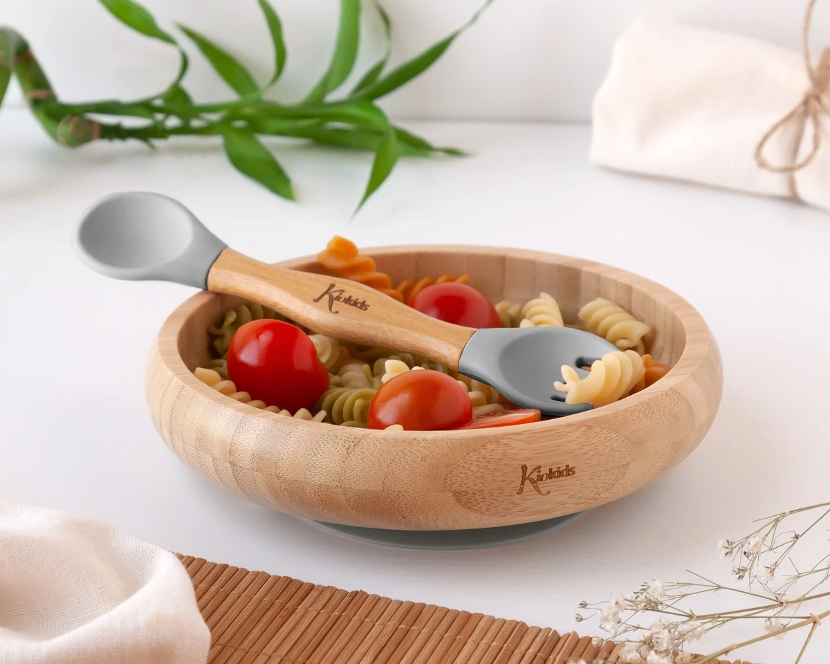 CONJUNTO LOUÇA 340ML SILICONE/BAMBU CINZENTO 2  PEÇAS
