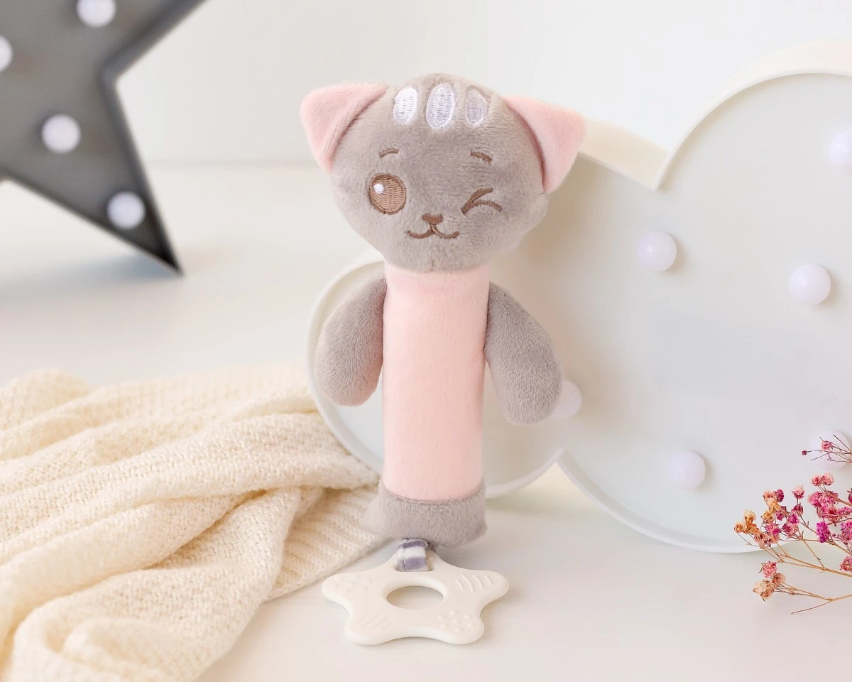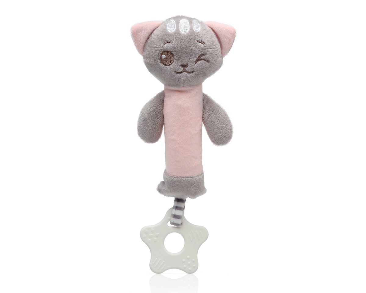 GATO 25 CM GUIZO E MORDEDOR ROSA
