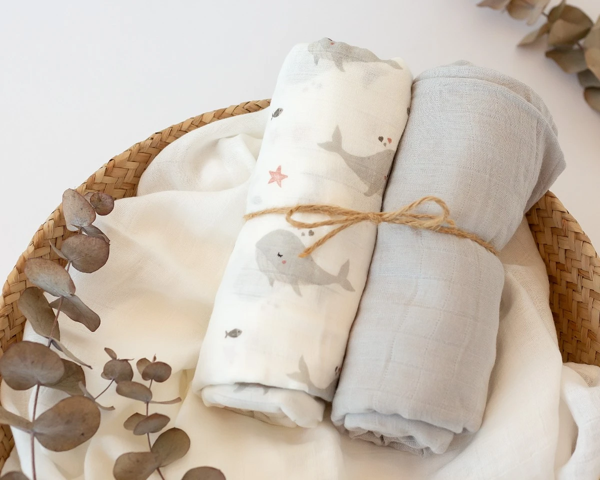 MUSSELINA 120X120CMS BAMBU CINZENTO 2 PEÇAS